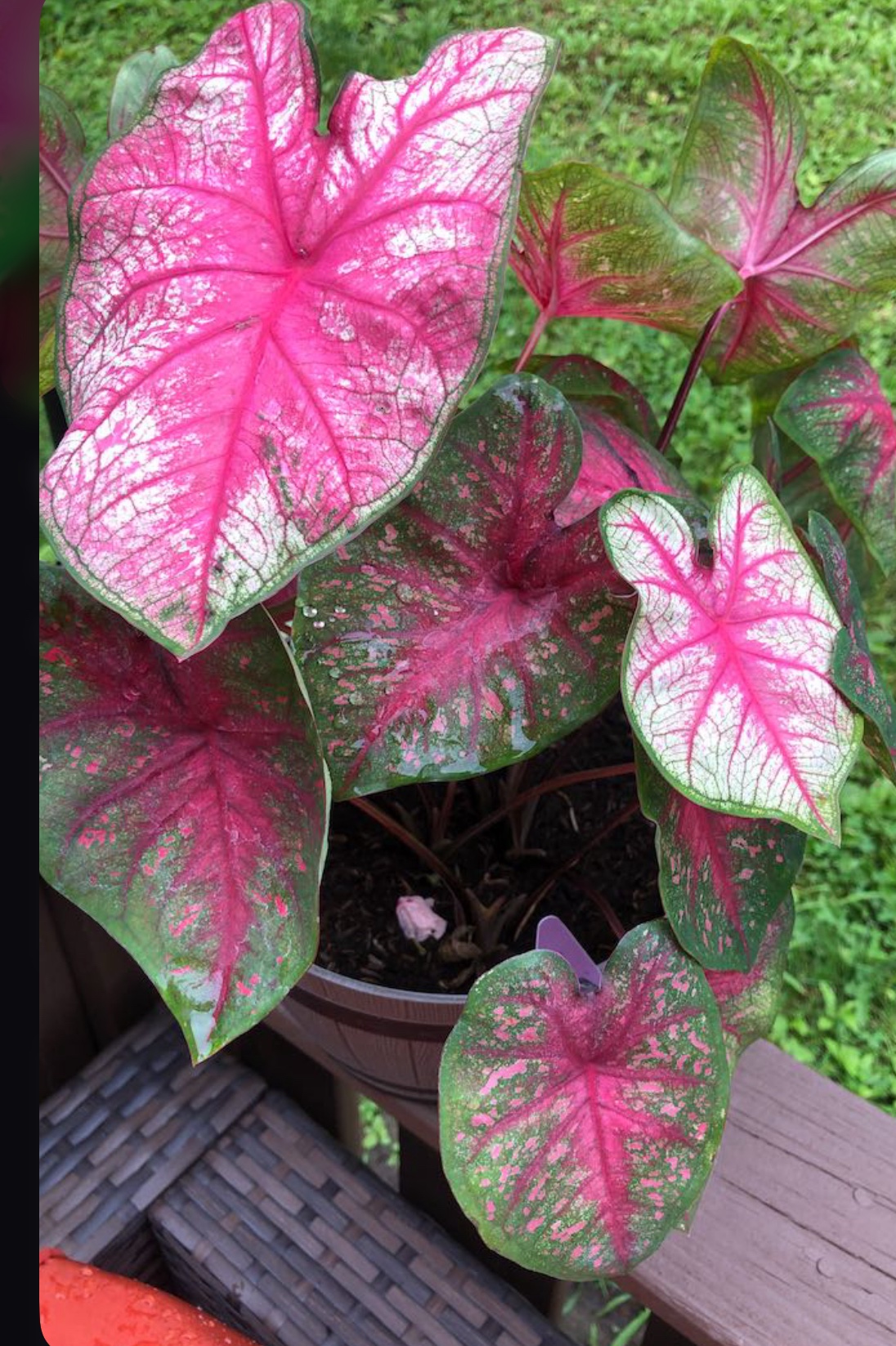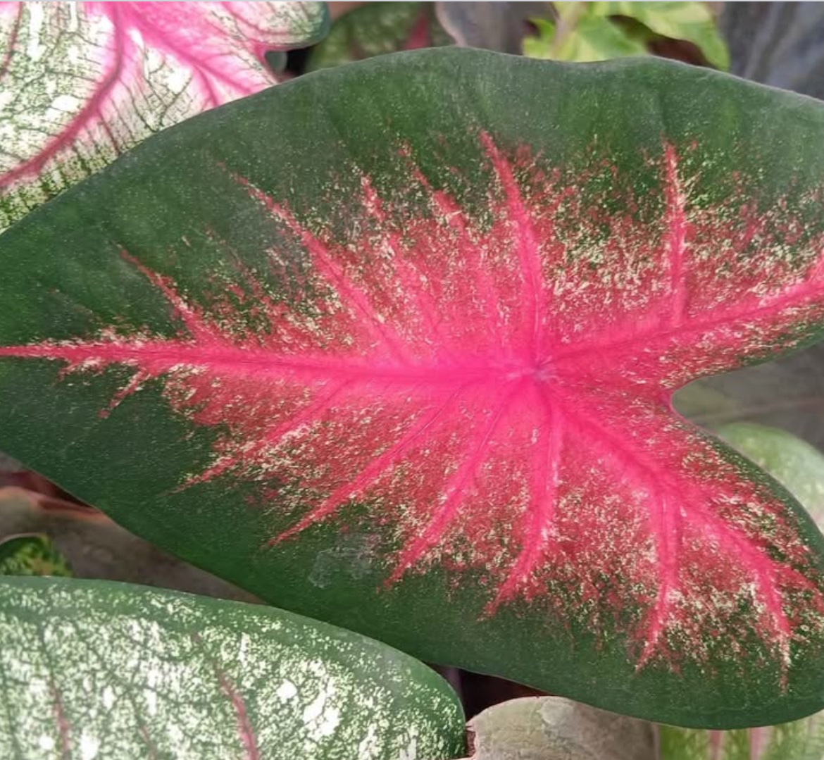 Caladiums are tropical plants known for their vibrant, multicolored foliage, which comes in heart-shaped (fancy-leaf) or narrow (lance-leaf) forms.