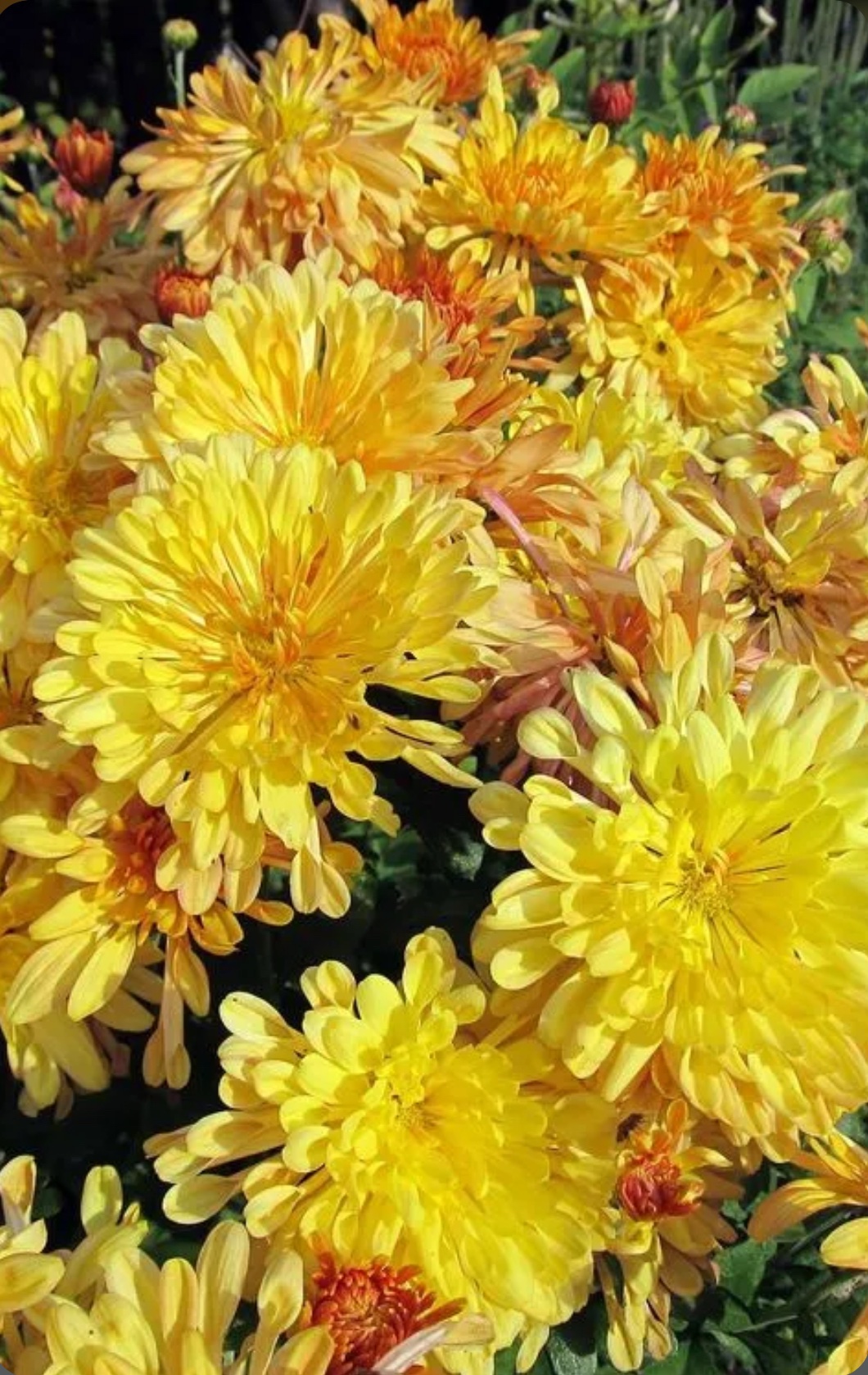 Chrysanthemums can come in a wide variety of colors including: White Yellow Pink Orange Red Burgundy Cream Salmon Bicolor
