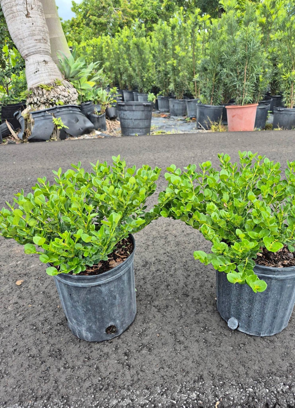 The ‘Emerald Blanket’ Carissa Boxwood is a dwarf variety of the Natal Plum family. It is drought tolerant and very salt tolerant. It has a sprawling habit so it is great for use as a ground cover or as a low hedge. It is slow growing and also produces fragrant white flowers in the Spring.