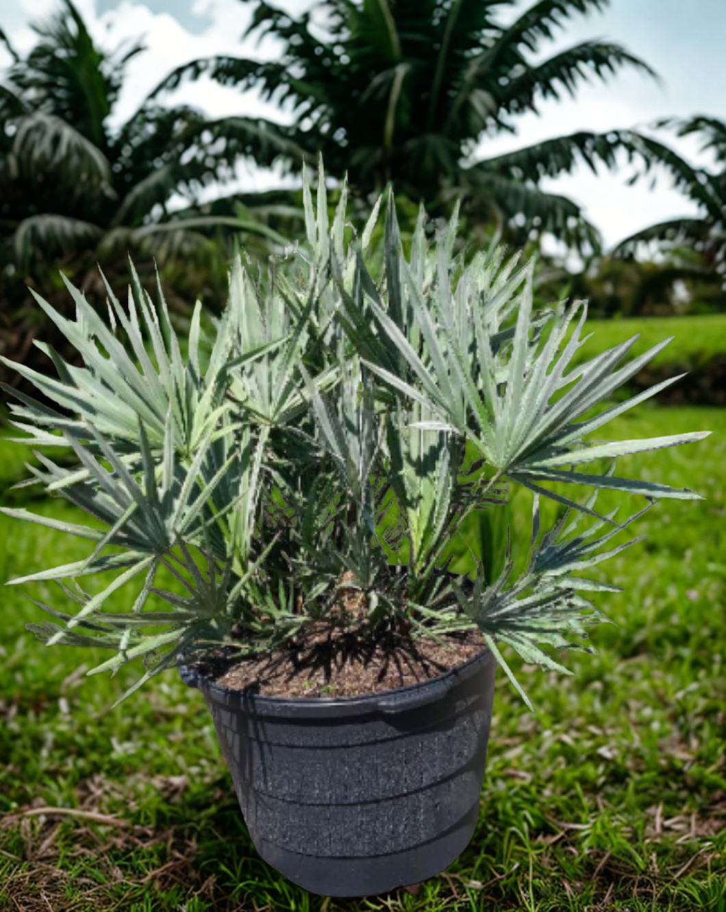 Comments: Plants with silverish foliage, most common along the coasts but also found in the interior, are sold as silver saw palmetto (Serenoa repens ‘Silver’ or ‘Cinerea’)